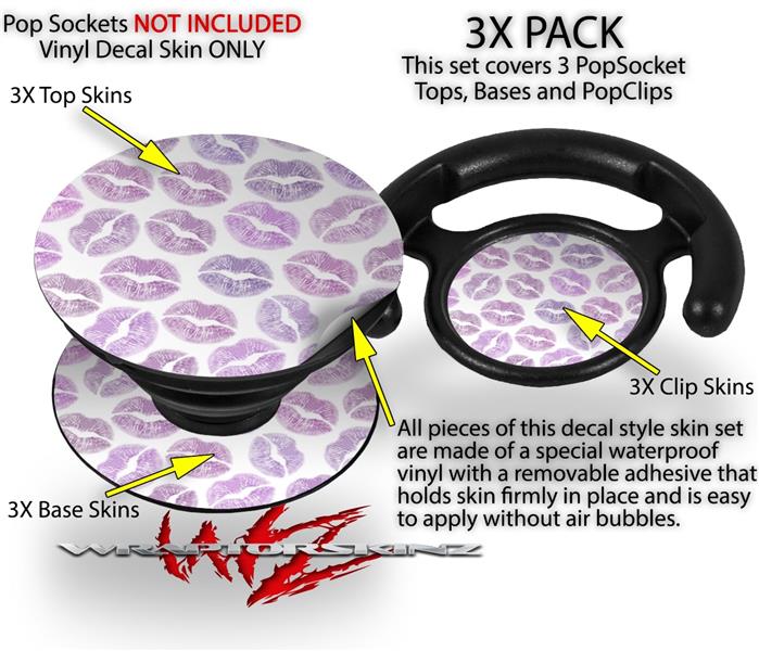 Decal Style Vinyl Skin Wrap 3 Pack for PopSockets Purple Lips (POPSOCKET NOT INCLUDED)