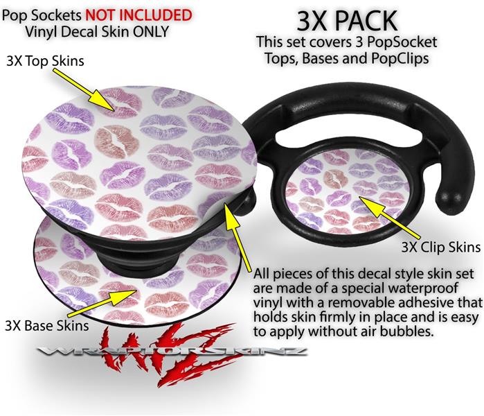 Decal Style Vinyl Skin Wrap 3 Pack for PopSockets Pink Purple Lips (POPSOCKET NOT INCLUDED)