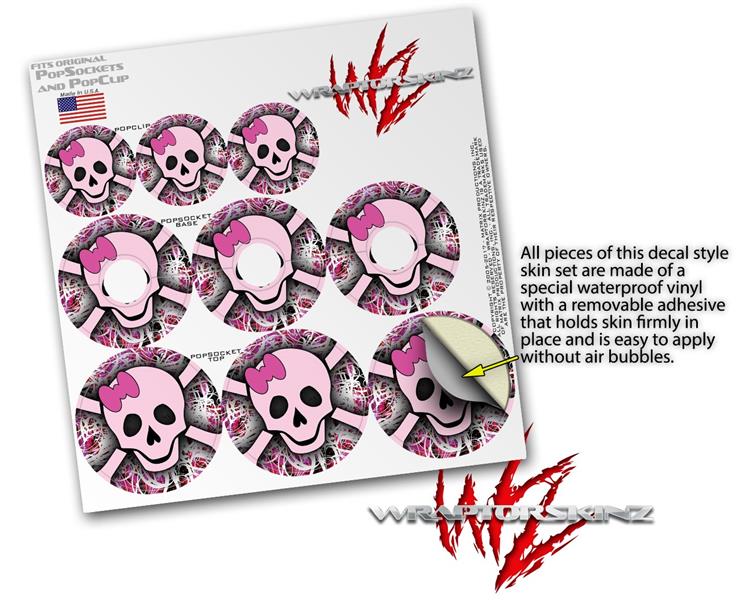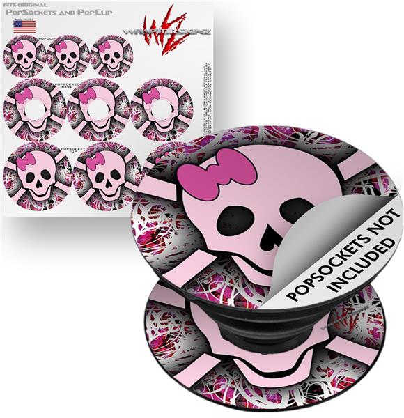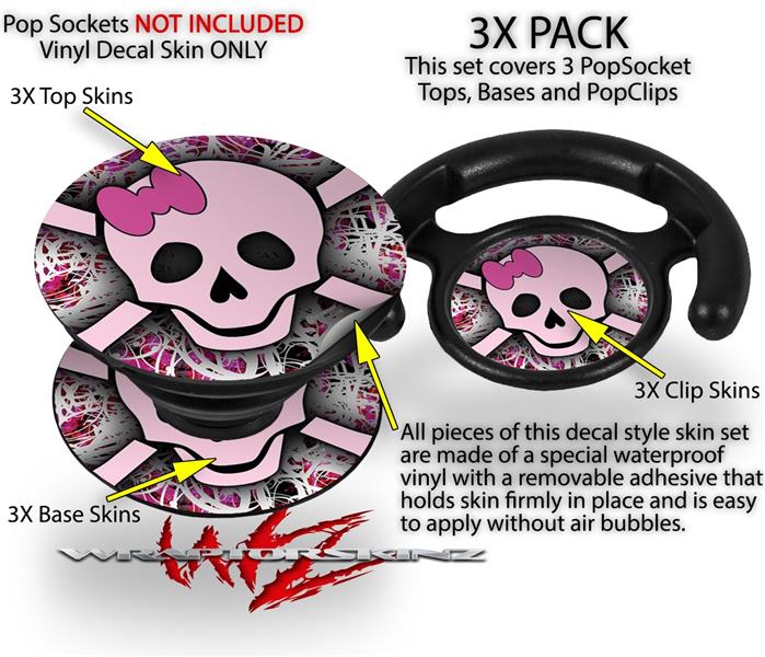 Decal Style Vinyl Skin Wrap 3 Pack for PopSockets Pink Skull (POPSOCKET NOT INCLUDED)