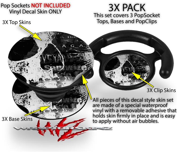 Decal Style Vinyl Skin Wrap 3 Pack for PopSockets Urban Skull (POPSOCKET NOT INCLUDED)