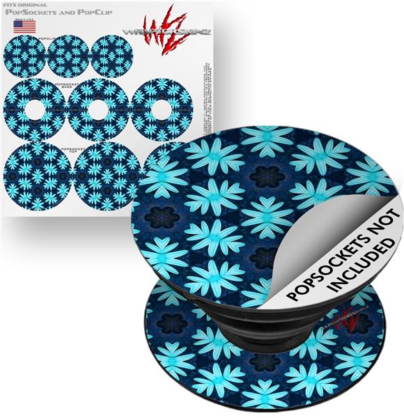 Decal Style Vinyl Skin Wrap 3 Pack for PopSockets Abstract Floral Blue (POPSOCKET NOT INCLUDED)