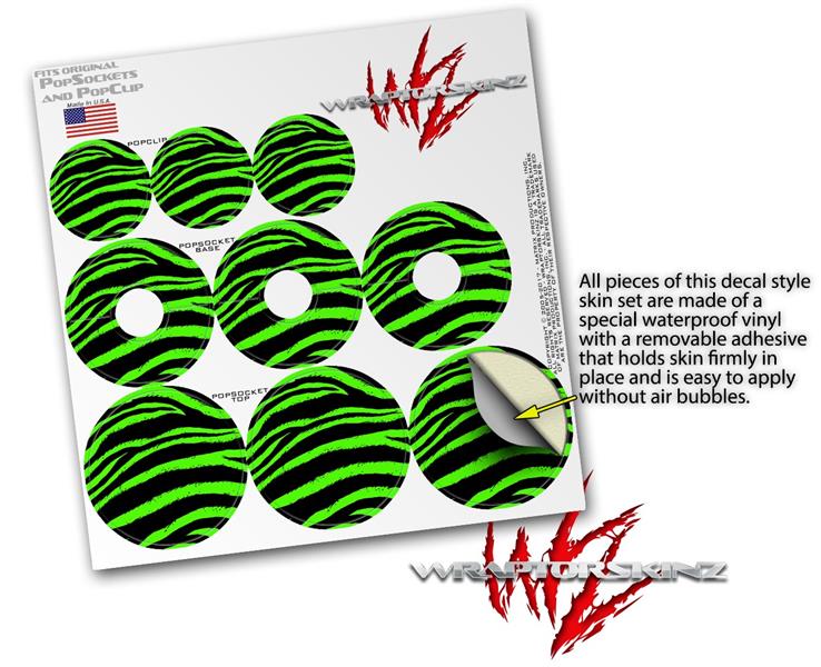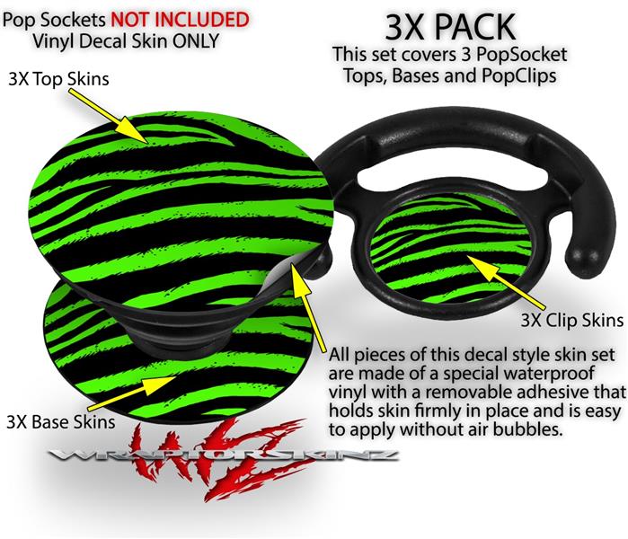 Decal Style Vinyl Skin Wrap 3 Pack for PopSockets Zebra Green (POPSOCKET NOT INCLUDED)