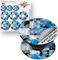 Decal Style Vinyl Skin Wrap 3 Pack for PopSockets Checker Skull Splatter Blue (POPSOCKET NOT INCLUDED)