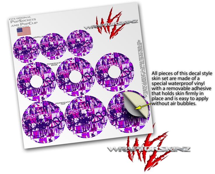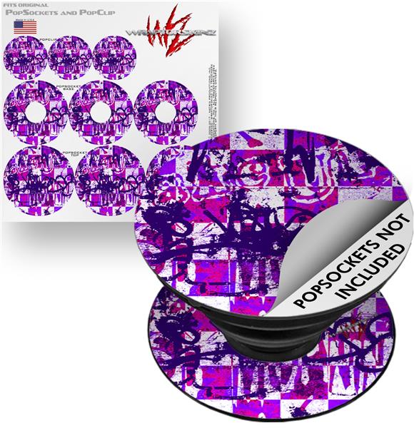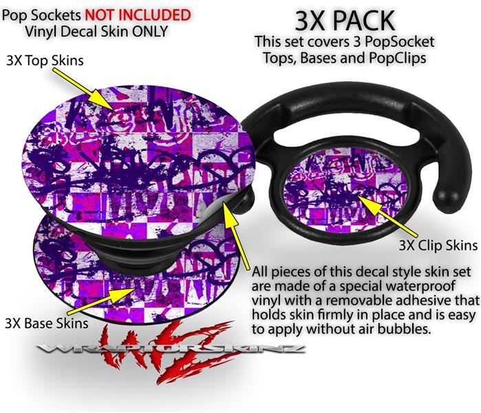 Decal Style Vinyl Skin Wrap 3 Pack for PopSockets Purple Checker Graffiti (POPSOCKET NOT INCLUDED)