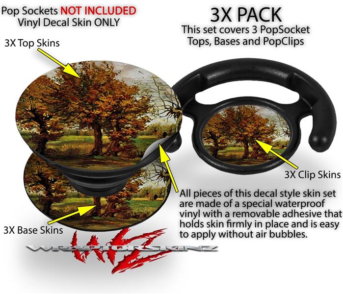 Decal Style Vinyl Skin Wrap 3 Pack for PopSockets Vincent Van Gogh Autumn Landscape With Four Trees (POPSOCKET NOT INCLUDED)