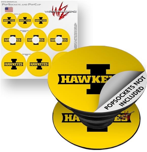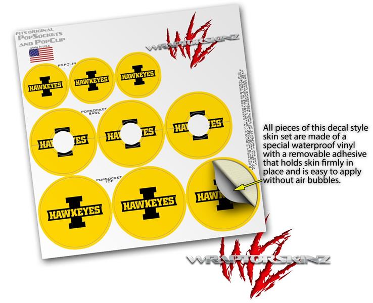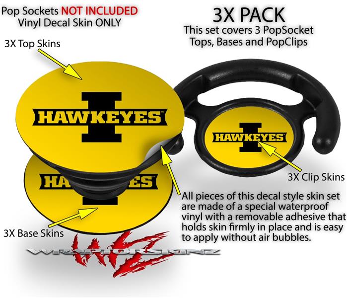Decal Style Vinyl Skin Wrap 3 Pack for PopSockets Iowa Hawkeyes 02 Black on Gold (POPSOCKET NOT INCLUDED)
