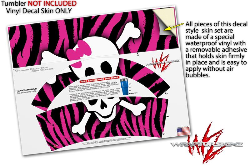 Skin Decal Wrap for Walmart Ozark Trail Tumblers 40oz Pink Zebra Skull (TUMBLER NOT INCLUDED) by WraptorSkinz