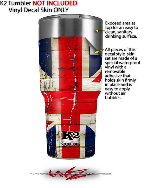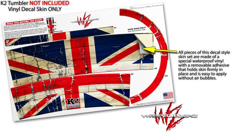 Skin Decal Wrap for K2 Element Tumbler 30oz - Painted Faded and Cracked Union Jack British Flag (TUMBLER NOT INCLUDED) by WraptorSkinz