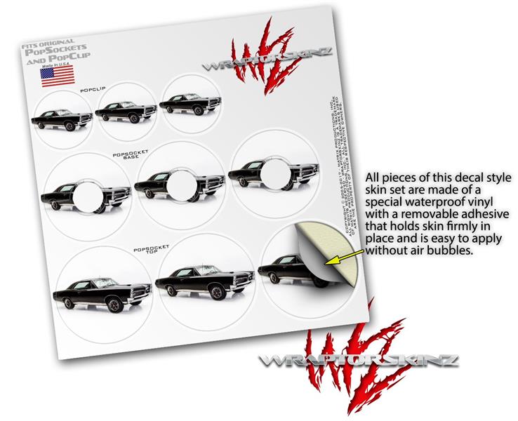 Decal Style Vinyl Skin Wrap 3 Pack for PopSockets 1967 Black Pontiac GTO 3786 (POPSOCKET NOT INCLUDED)