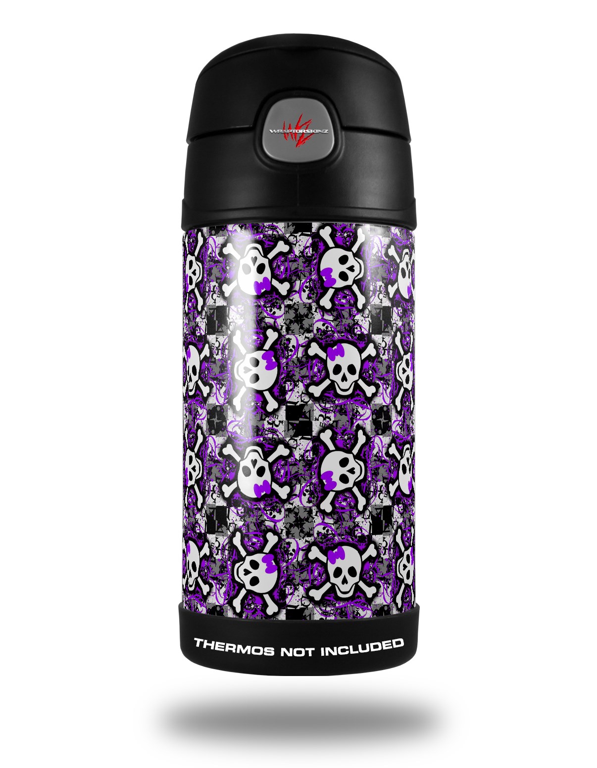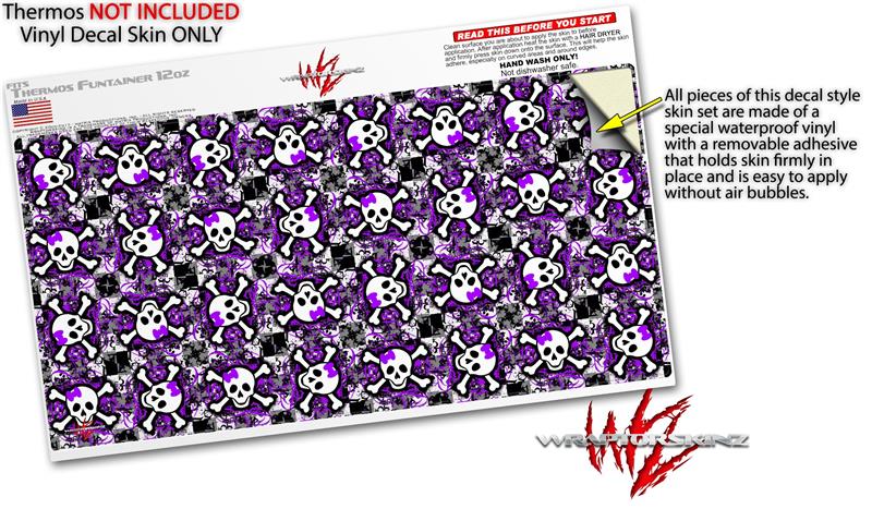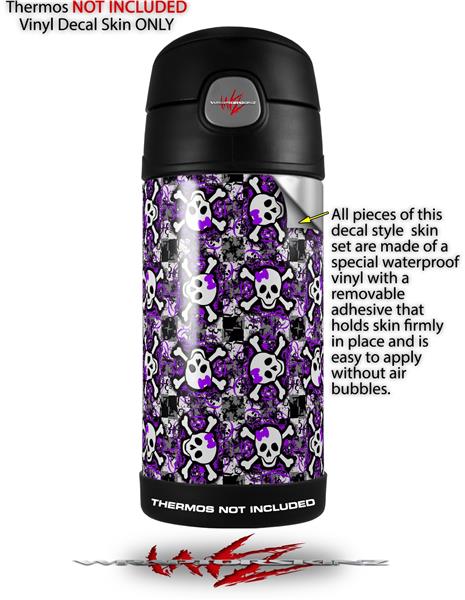 Skin Decal Wrap for Thermos Funtainer 12oz Bottle Splatter Girly Skull Purple (BOTTLE NOT INCLUDED) by WraptorSkinz