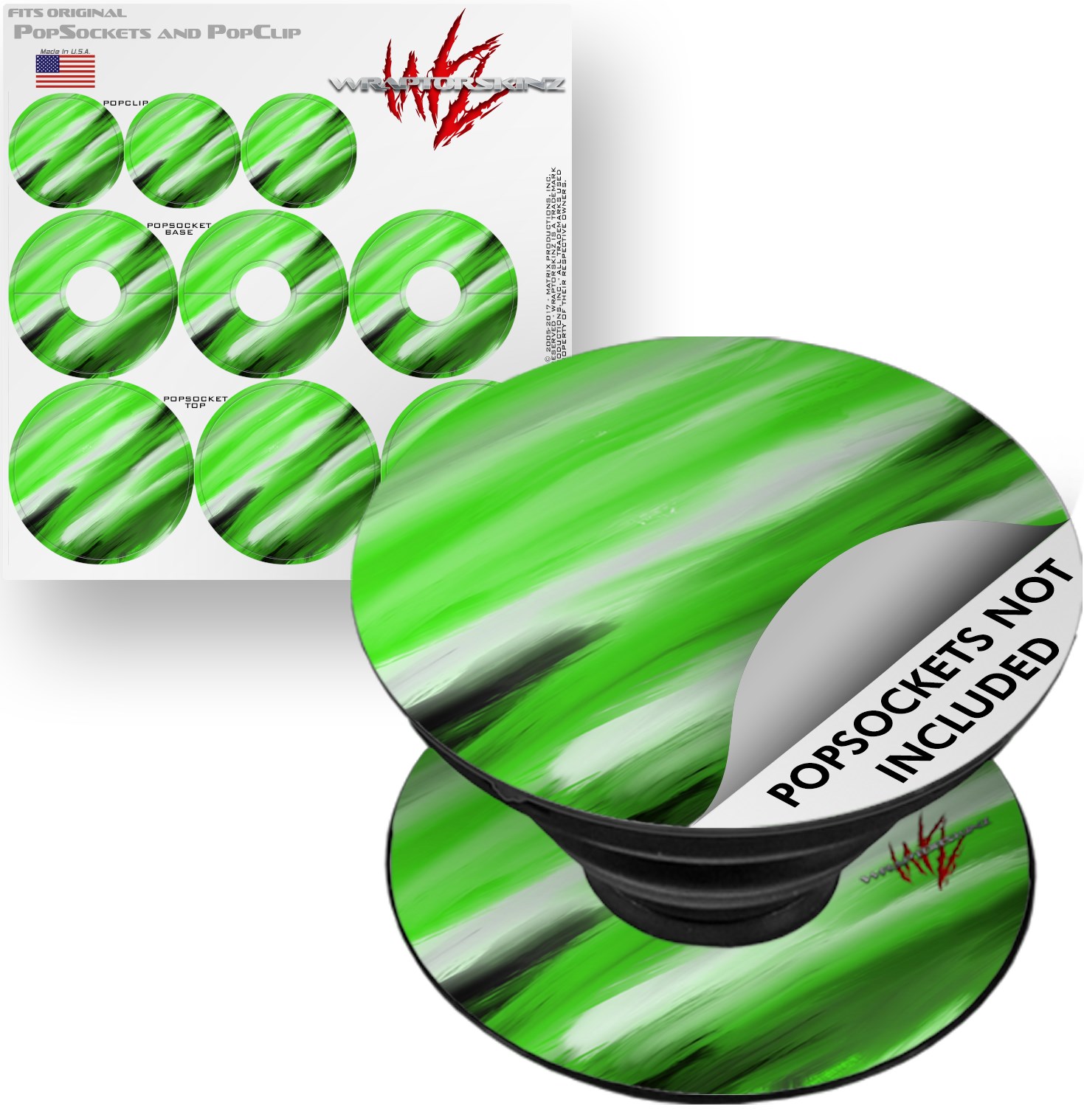 WraptorSkinz® skin decals are printed using superb photo quality designs and vibrant colors printed with special fade resistant inks that last even in direct sun for years. WraptorSkinz® are a composite of two layers of commercial grade materials. The bottom layer is a soft, flexible vinyl with a special removable adhesive that is easily positioned, applied without air bubbles. Next, we print the bottom layer with UV protected, fade resistant inks that deliver superb photo quality designs in vibrant colors. Finally, we bond a professional grade laminate over the entire skin adding a glossy protective finish. This WraptorSkinz skin accessory is not affiliated with, endorsed by and is in no way connected with the PopSocket products or brand.