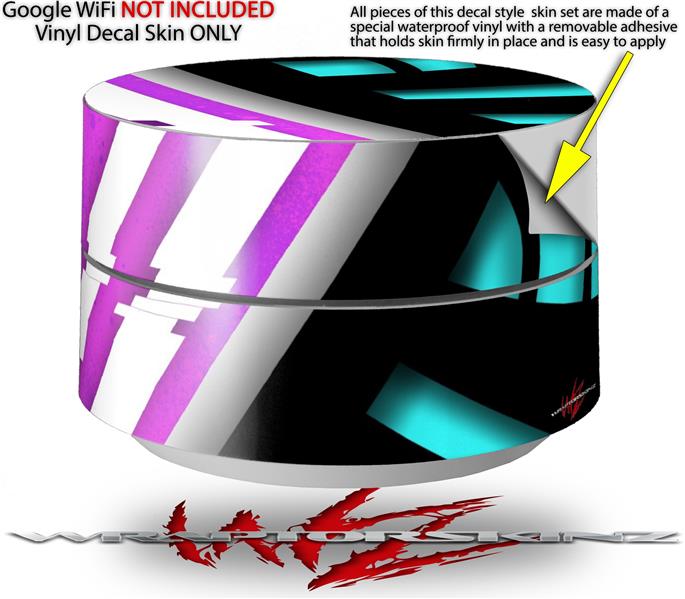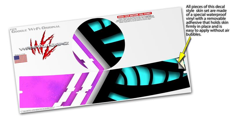 Skin Decal Wrap for Google WiFi Original Black Waves Neon Teal Hot Pink (GOOGLE WIFI NOT INCLUDED)