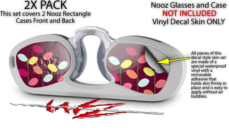 • Skin set covers front and back or two Nooz Rectangle Glasses Cases