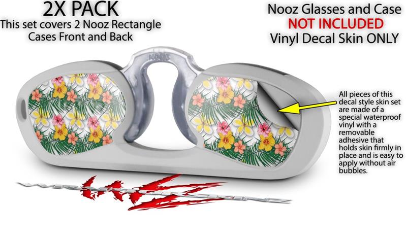 Decal Style Vinyl Skin Wrap 2 Pack for Nooz Glasses Rectangle Case Beach Flowers 02 White (NOOZ NOT INCLUDED) by WraptorSkinz