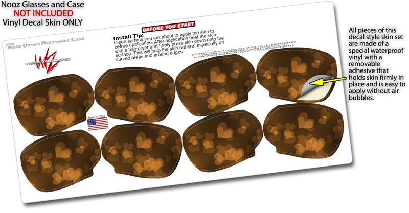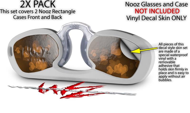 Decal Style Vinyl Skin Wrap 2 Pack for Nooz Glasses Rectangle Case Bokeh Hearts Orange (NOOZ NOT INCLUDED) by WraptorSkinz