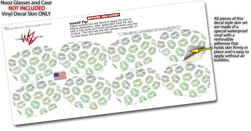 Decal Style Vinyl Skin Wrap 2 Pack for Nooz Glasses Rectangle Case Green Lips (NOOZ NOT INCLUDED) by WraptorSkinz