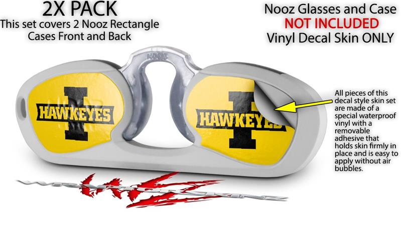 Decal Style Vinyl Skin Wrap 2 Pack for Nooz Glasses Rectangle Case Iowa Hawkeyes 02 Black on Gold (NOOZ NOT INCLUDED) by WraptorSkinz