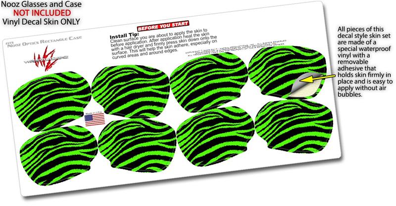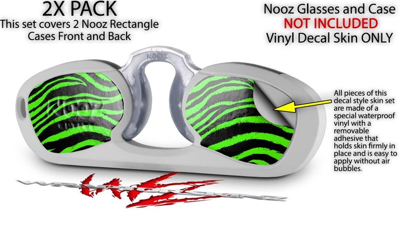 Decal Style Vinyl Skin Wrap 2 Pack for Nooz Glasses Rectangle Case Zebra Green (NOOZ NOT INCLUDED) by WraptorSkinz