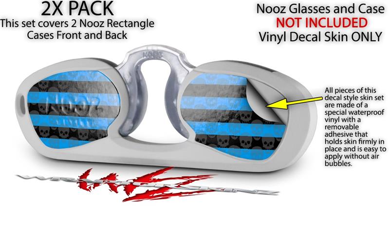 Decal Style Vinyl Skin Wrap 2 Pack for Nooz Glasses Rectangle Case Skull Stripes Blue (NOOZ NOT INCLUDED) by WraptorSkinz