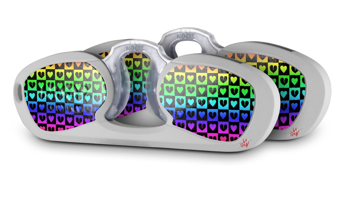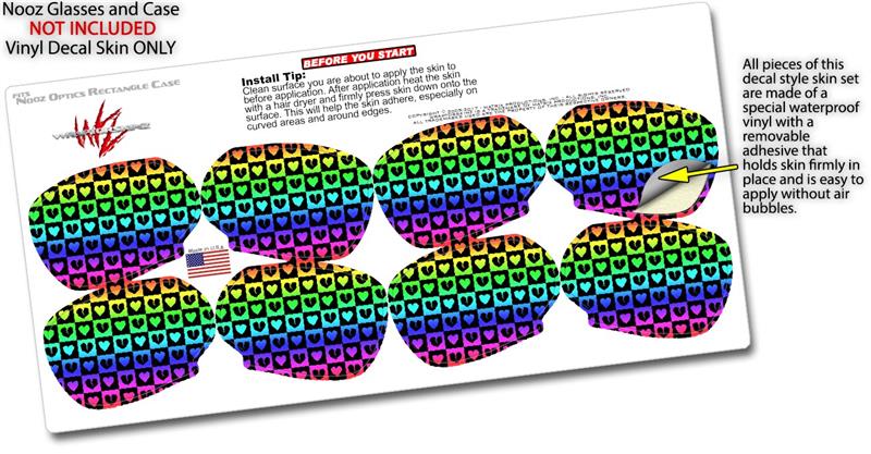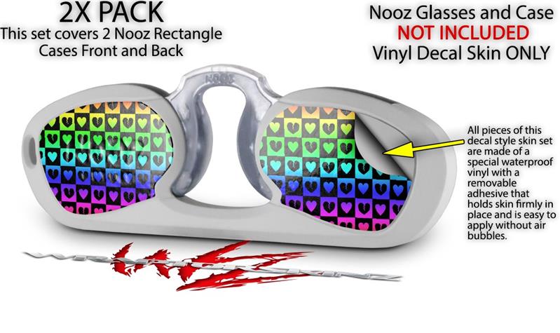Decal Style Vinyl Skin Wrap 2 Pack for Nooz Glasses Rectangle Case Love Heart Checkers Rainbow (NOOZ NOT INCLUDED) by WraptorSkinz