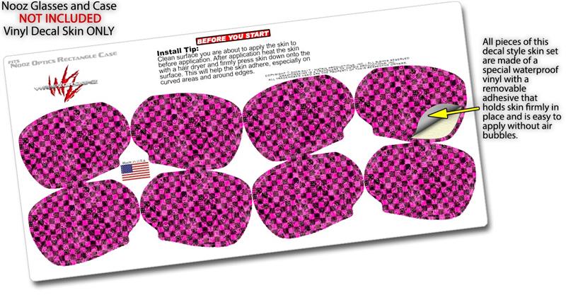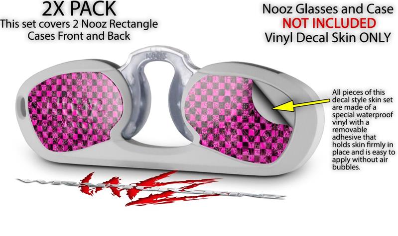 Decal Style Vinyl Skin Wrap 2 Pack for Nooz Glasses Rectangle Case Pink Checkerboard Sketches (NOOZ NOT INCLUDED) by WraptorSkinz