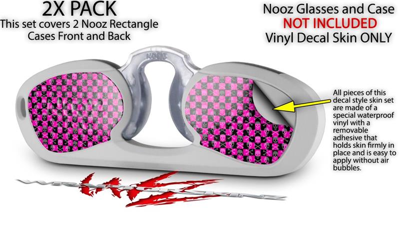 Decal Style Vinyl Skin Wrap 2 Pack for Nooz Glasses Rectangle Case Skull and Crossbones Checkerboard (NOOZ NOT INCLUDED) by WraptorSkinz