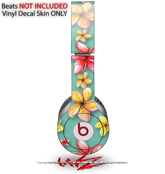 WraptorSkinz Skin Decal Wrap compatible with Beats Solo HD (Original) Beach Flowers Seafoam Green (HEADPHONES NOT INCLUDED)