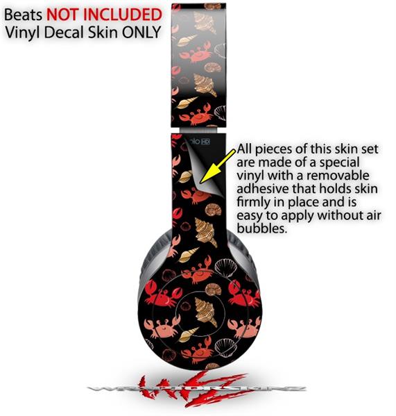 WraptorSkinz Skin Decal Wrap compatible with Beats Solo HD (Original) Crabs and Shells Black (HEADPHONES NOT INCLUDED)