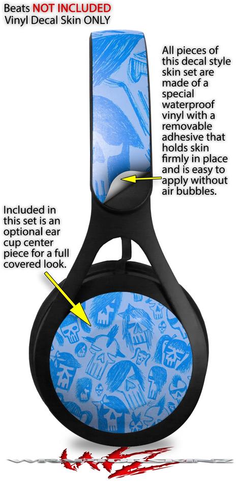WraptorSkinz Skin Decal Wrap compatible with Beats EP Headphones Skull Sketches Blue Skin Only HEADPHONES NOT INCLUDED