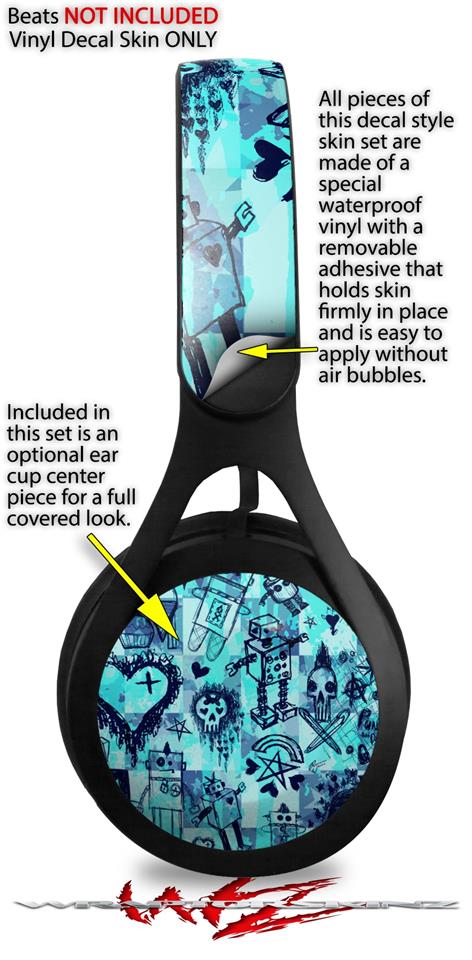 WraptorSkinz Skin Decal Wrap compatible with Beats EP Headphones Scene Kid Sketches Blue Skin Only HEADPHONES NOT INCLUDED