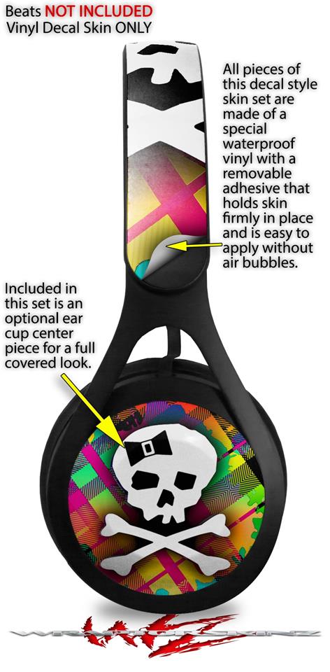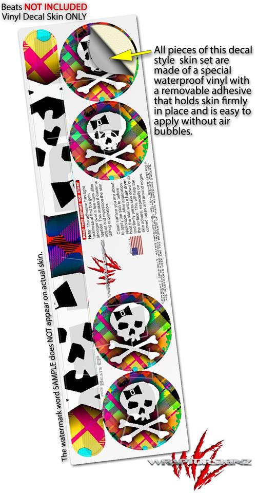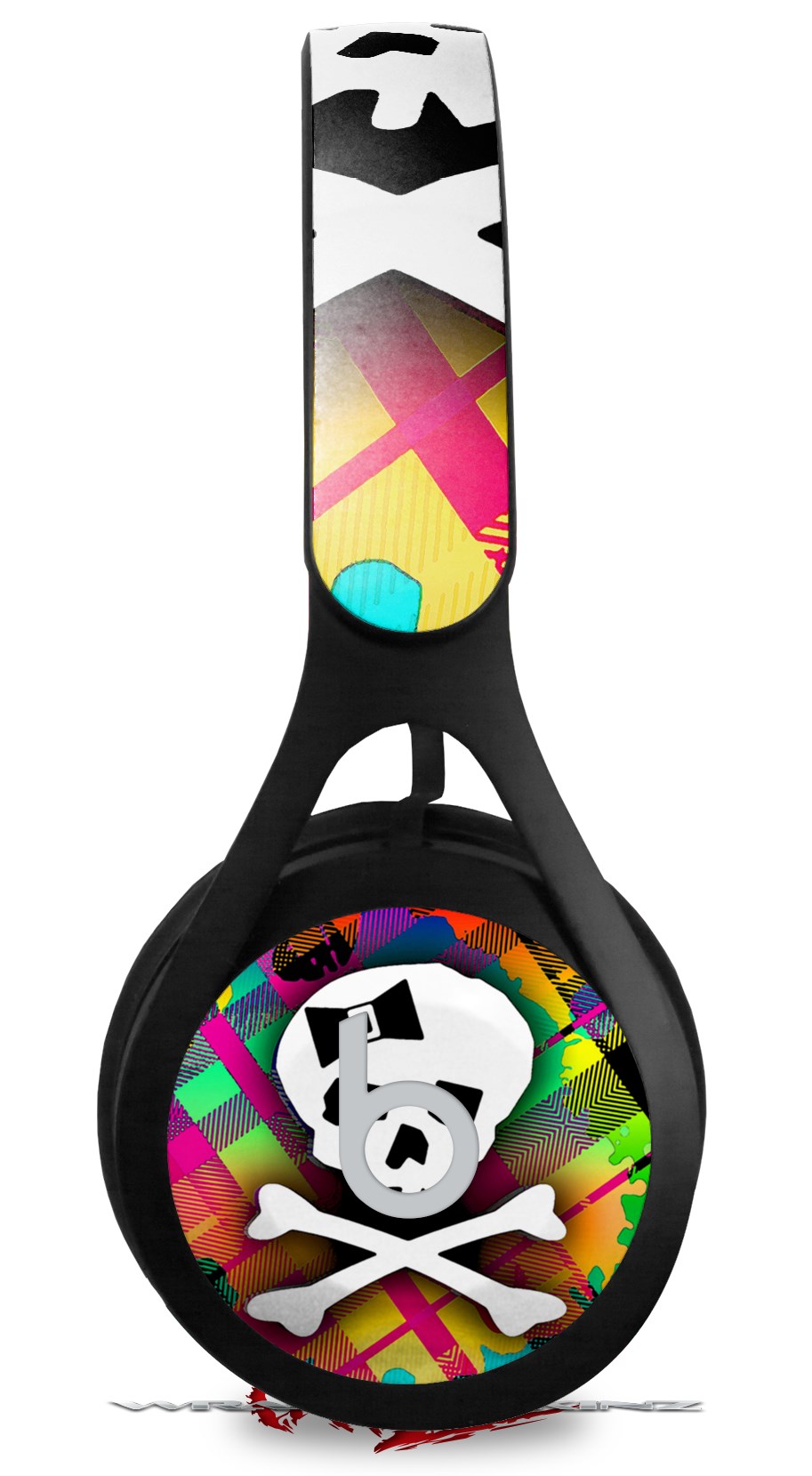 WraptorSkinz Skin Decal Wrap compatible with Beats EP Headphones Rainbow Plaid Skull Skin Only HEADPHONES NOT INCLUDED