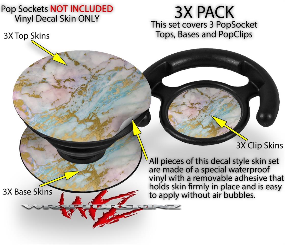 Decal Style Vinyl Skin Wrap 3 Pack for PopSockets Cotton Candy Gilded Marble (POPSOCKET NOT INCLUDED)