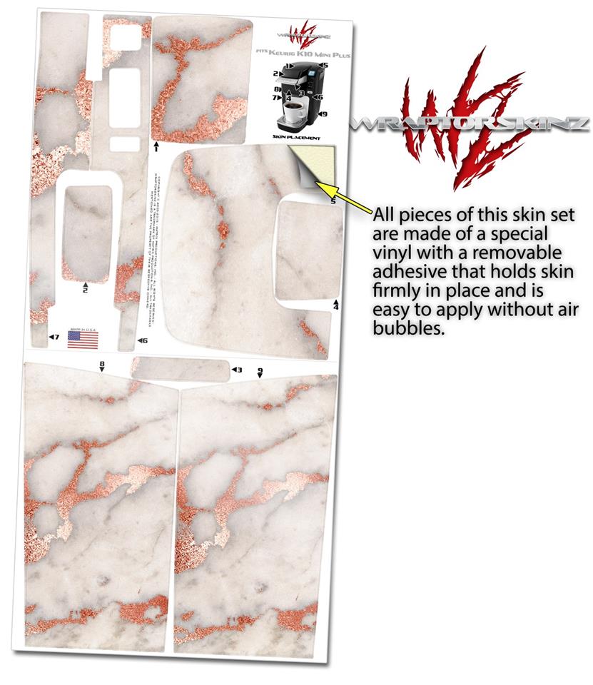 Decal Style Vinyl Skin compatible with Keurig K10 / K15 Mini Plus Coffee Makers Rose Gold Gilded Marble (KEURIG NOT INCLUDED)