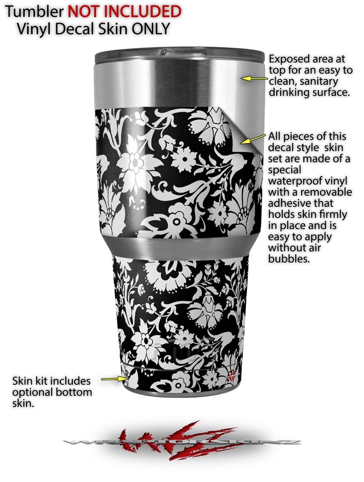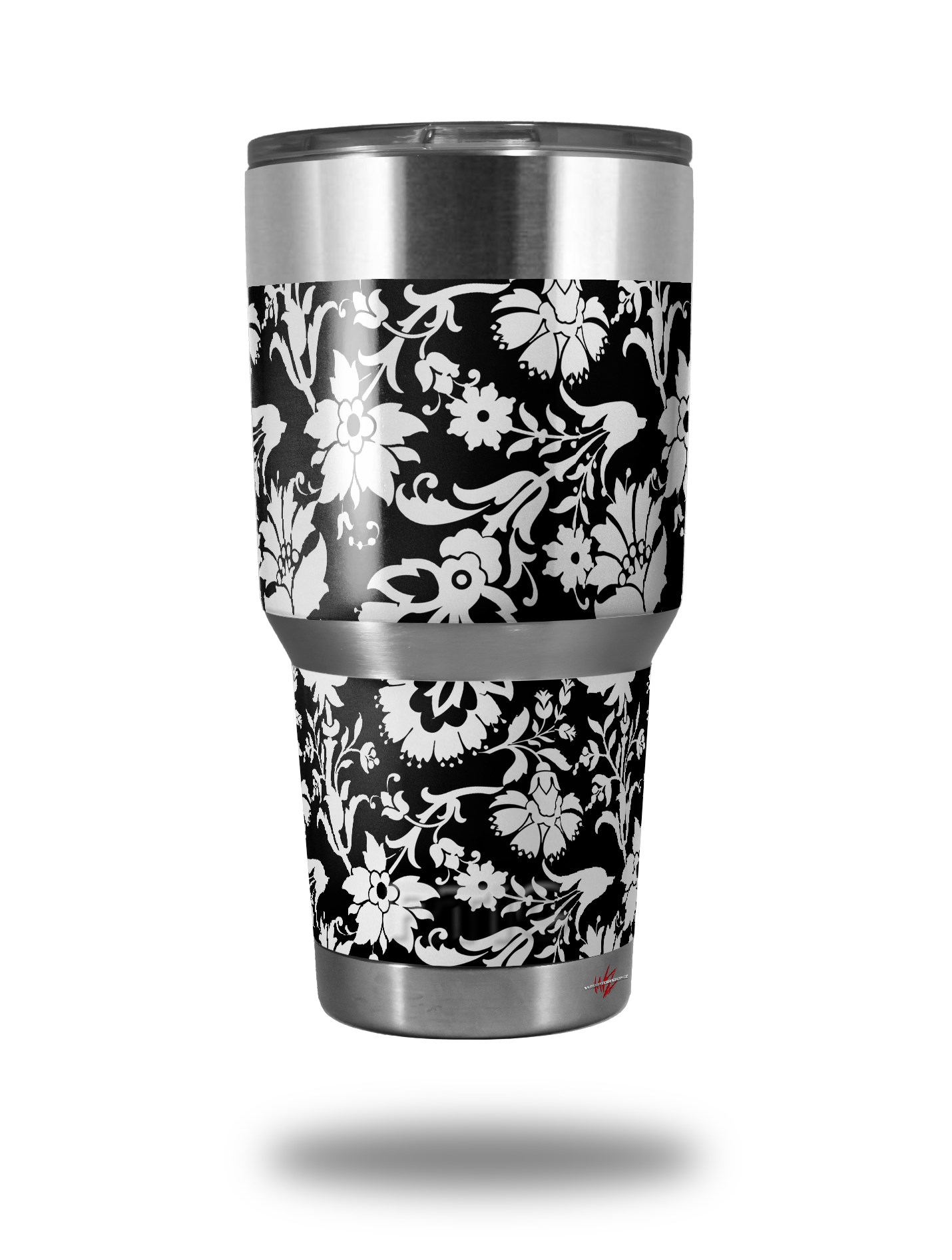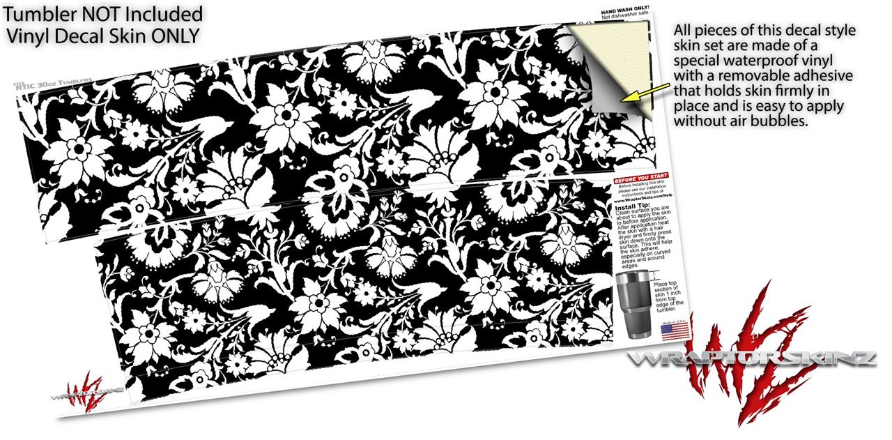 WraptorSkinz Skin Wrap compatible with RTIC 30oz ORIGINAL 2017 AND OLDER Tumblers Black and White Flower (TUMBLER NOT INCLUDED)