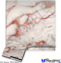 Decal Skin compatible with Sony PS3 Slim Rose Gold Gilded Marble
