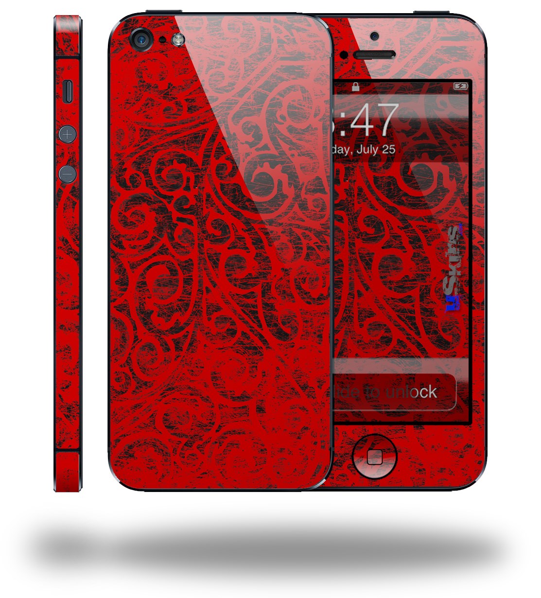 Folder Doodles Red - Decal Style Vinyl Skin (fits Apple Original iPhone 5, NOT the iPhone 5C or 5S)
