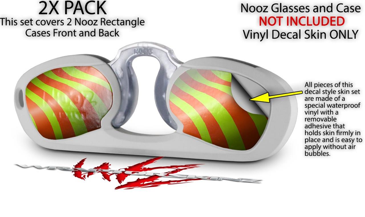 Decal Style Vinyl Skin Wrap 2 Pack for Nooz Glasses Rectangle Case Two Tone Waves Neon Green Orange (NOOZ NOT INCLUDED)