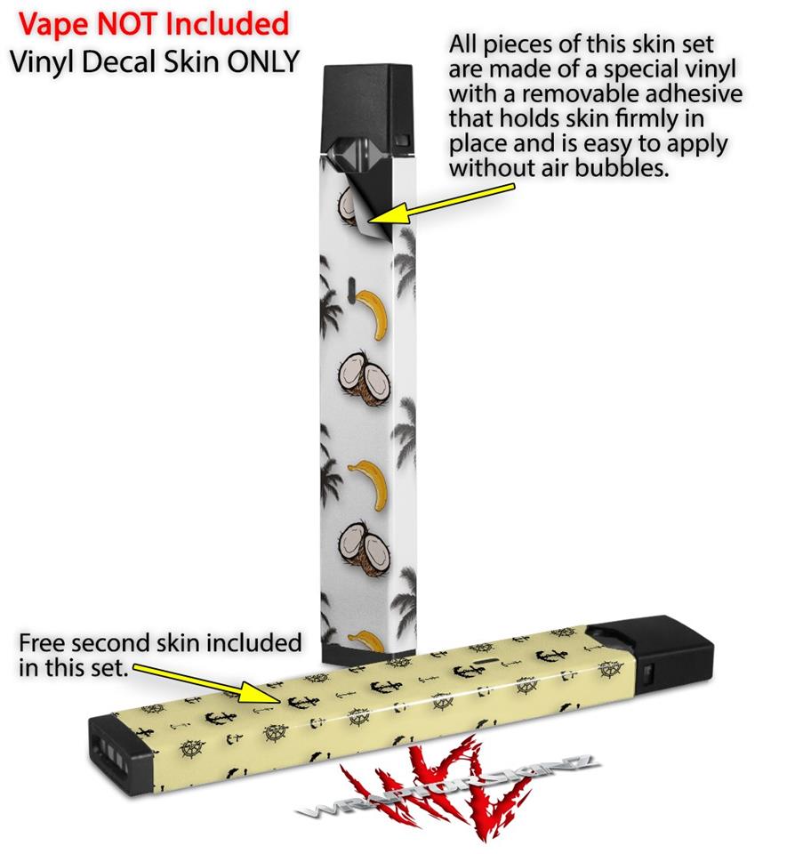 Skin Decal Wrap 2 Pack for Juul Vapes Coconuts Palm Trees and Bananas White JUUL NOT INCLUDED