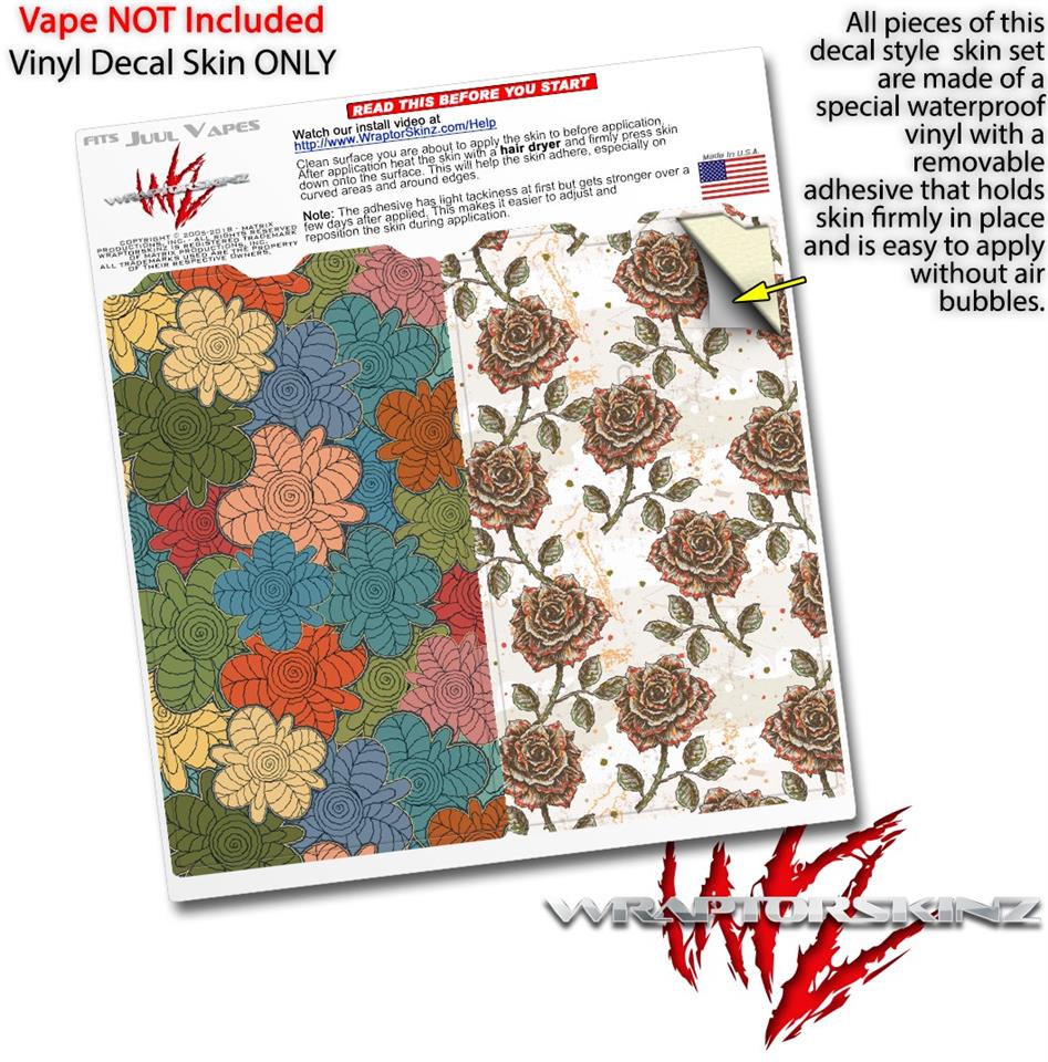 Skin Decal Wrap 2 Pack for Juul Vapes Flowers Pattern 01 JUUL NOT INCLUDED
