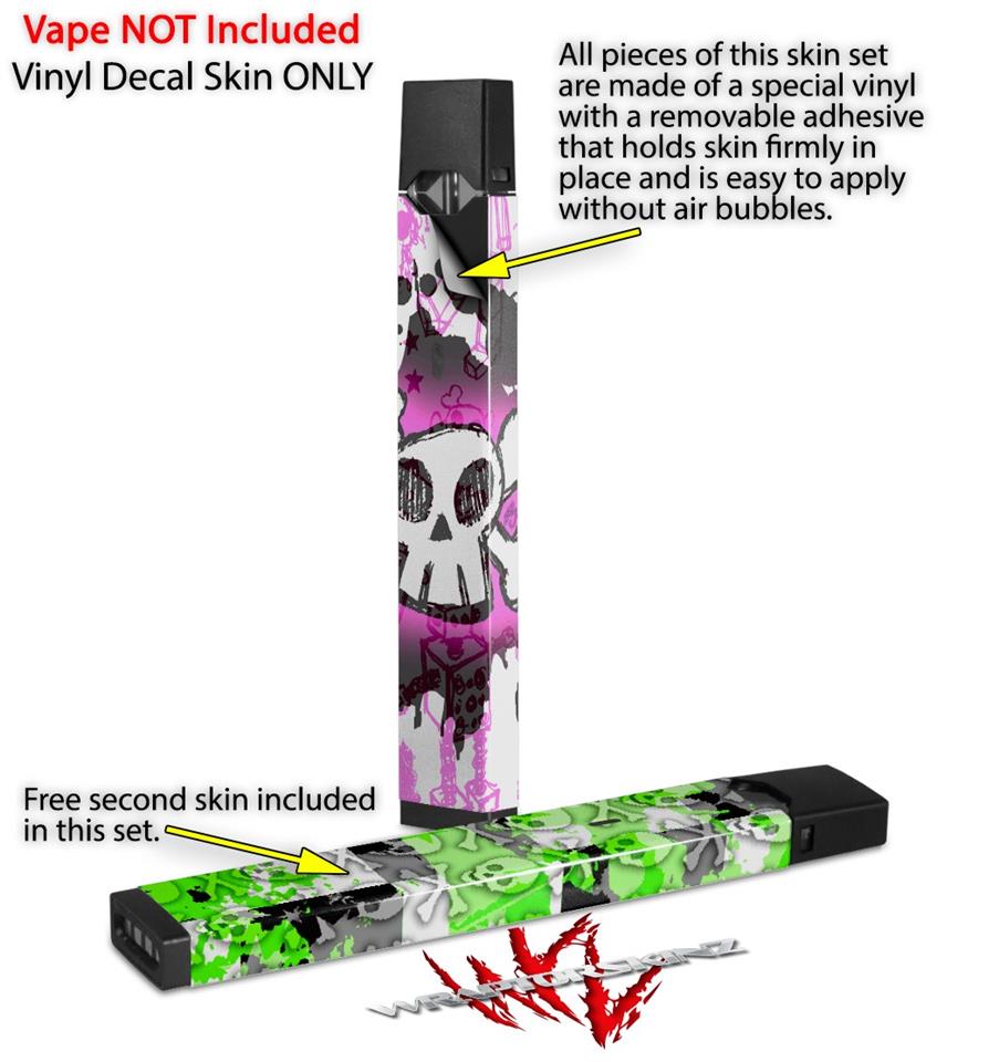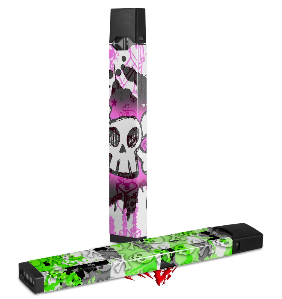 Skin Decal Wrap 2 Pack for Juul Vapes Cartoon Skull Pink JUUL NOT INCLUDED