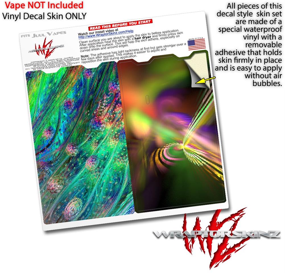 WraptorSkinz® skin wraps are printed using superb photo quality designs and vibrant colors printed with special fade resistant inks that last even in direct sun for years. WraptorSkinz are a composite of two layers of commercial grade materials. The bottom layer is a soft, flexible vinyl with a special removable adhesive that is easily positioned, applied without air bubbles. Next we print the bottom layer with UV protected, fade resistant inks that deliver superb photo quality designs in vibrant colors. Finally we bond a professional grade laminate over the entire skin adding a glossy protective finish. This product is not affiliated with or endorsed by the Juul brand.