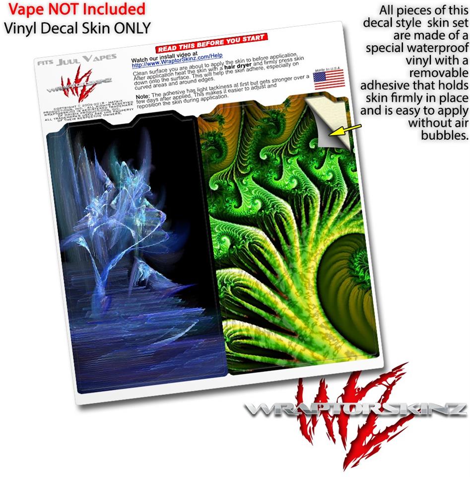 WraptorSkinz® skin wraps are printed using superb photo quality designs and vibrant colors printed with special fade resistant inks that last even in direct sun for years. WraptorSkinz are a composite of two layers of commercial grade materials. The bottom layer is a soft, flexible vinyl with a special removable adhesive that is easily positioned, applied without air bubbles. Next we print the bottom layer with UV protected, fade resistant inks that deliver superb photo quality designs in vibrant colors. Finally we bond a professional grade laminate over the entire skin adding a glossy protective finish. This product is not affiliated with or endorsed by the Juul brand.