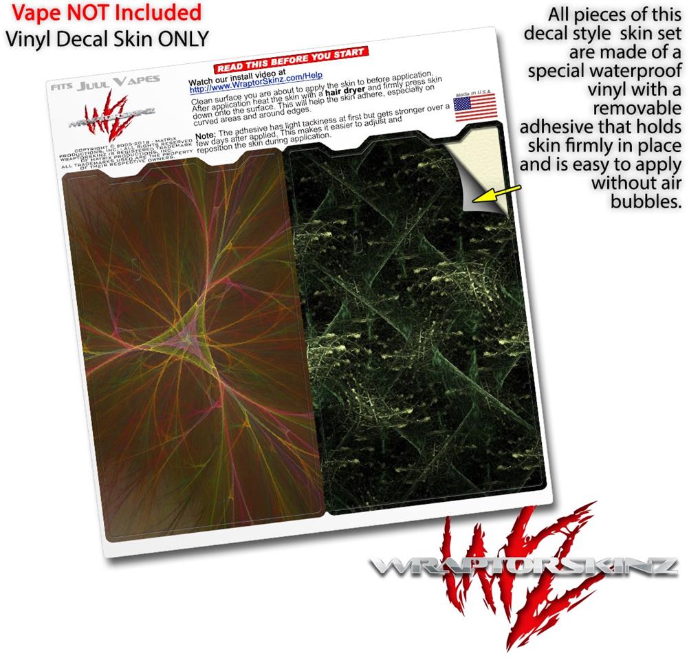 WraptorSkinz® skin wraps are printed using superb photo quality designs and vibrant colors printed with special fade resistant inks that last even in direct sun for years. WraptorSkinz are a composite of two layers of commercial grade materials. The bottom layer is a soft, flexible vinyl with a special removable adhesive that is easily positioned, applied without air bubbles. Next we print the bottom layer with UV protected, fade resistant inks that deliver superb photo quality designs in vibrant colors. Finally we bond a professional grade laminate over the entire skin adding a glossy protective finish. This product is not affiliated with or endorsed by the Juul brand.