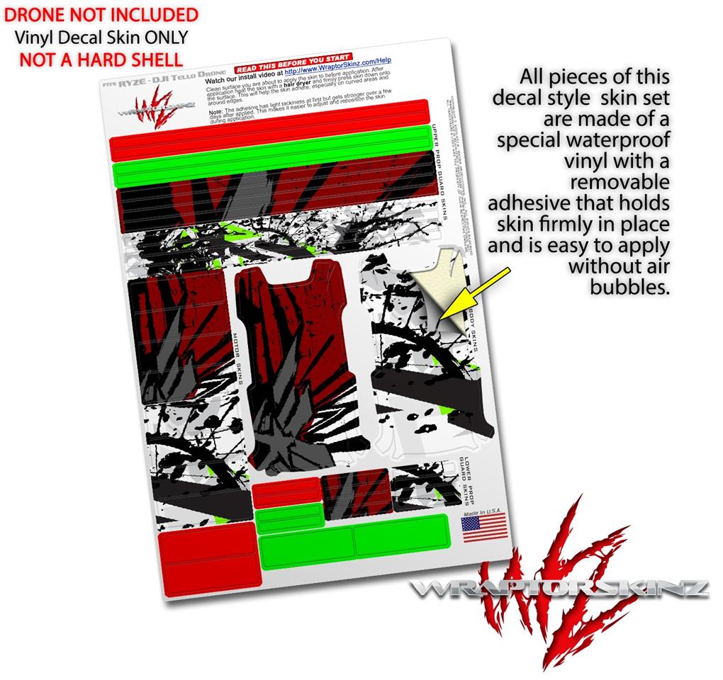 WraptorSkinz® skin wraps are printed using superb photo quality designs and vibrant colors printed with special fade resistant inks that last even in direct sun for years. WraptorSkinz are a composite of two layers of commercial grade materials. The bottom layer is a soft, flexible vinyl with a special removable adhesive that is easily positioned, applied without air bubbles. Next we print the bottom layer with UV protected, fade resistant inks that deliver superb photo quality designs in vibrant colors. Finally we bond a professional grade laminate over the entire skin adding a glossy protective finish. This product is not affiliated with or endorsed by the Ryze or DJI brand.