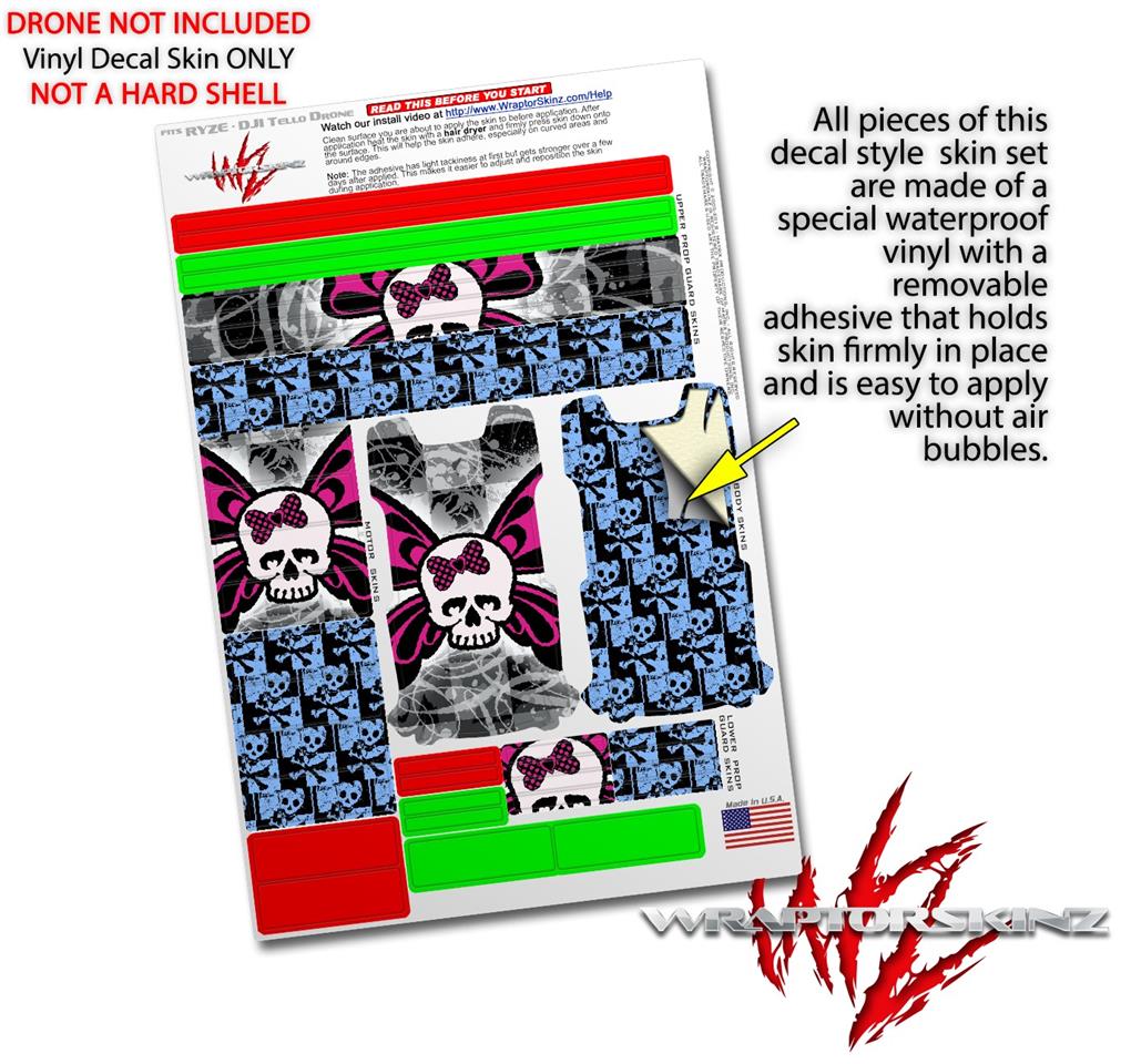 Skin Decal Wrap 2 Pack for DJI Ryze Tello Drone Skull Butterfly DRONE NOT INCLUDED