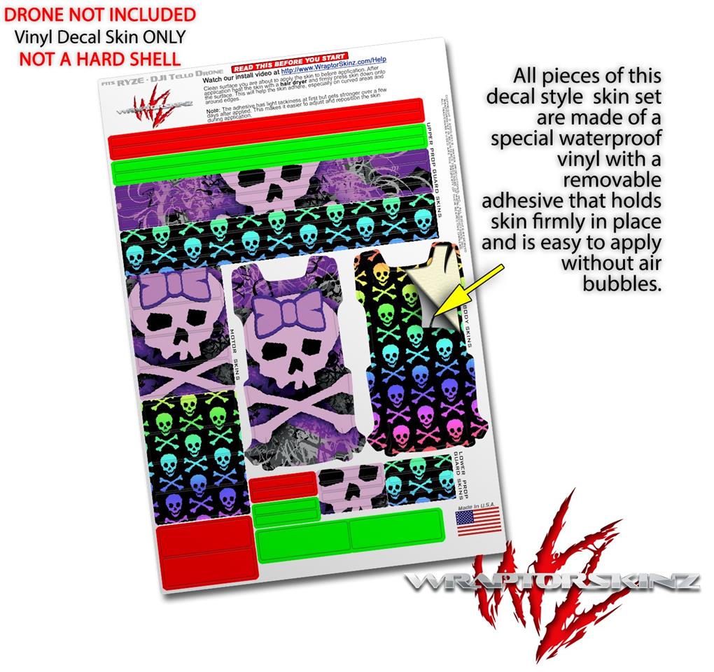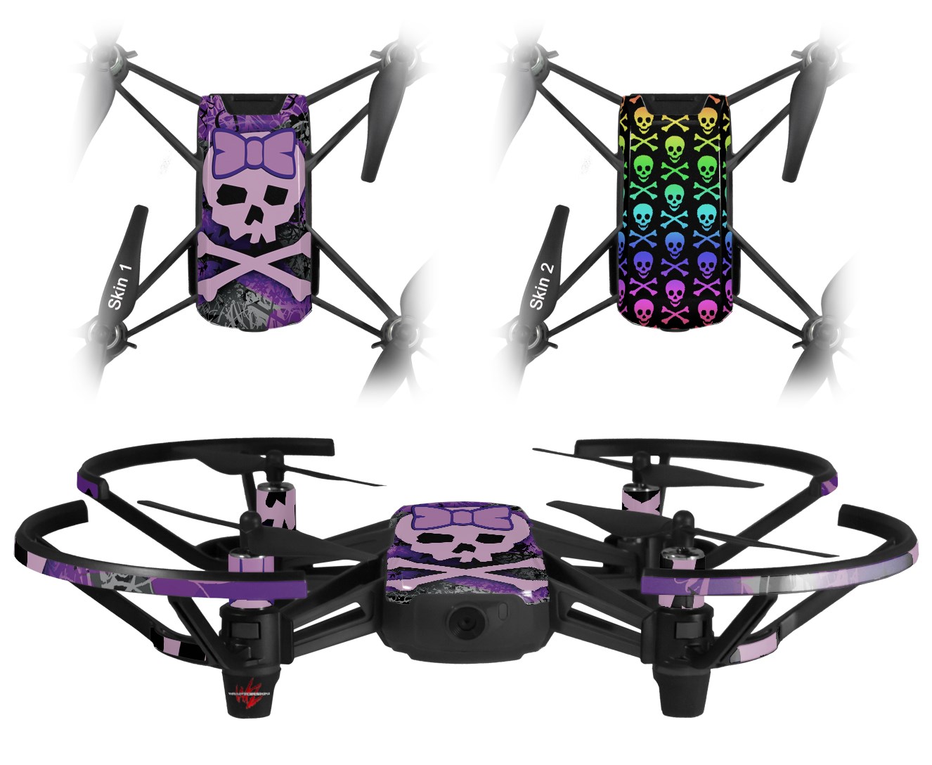 Skin Decal Wrap 2 Pack for DJI Ryze Tello Drone Purple Girly Skull DRONE NOT INCLUDED