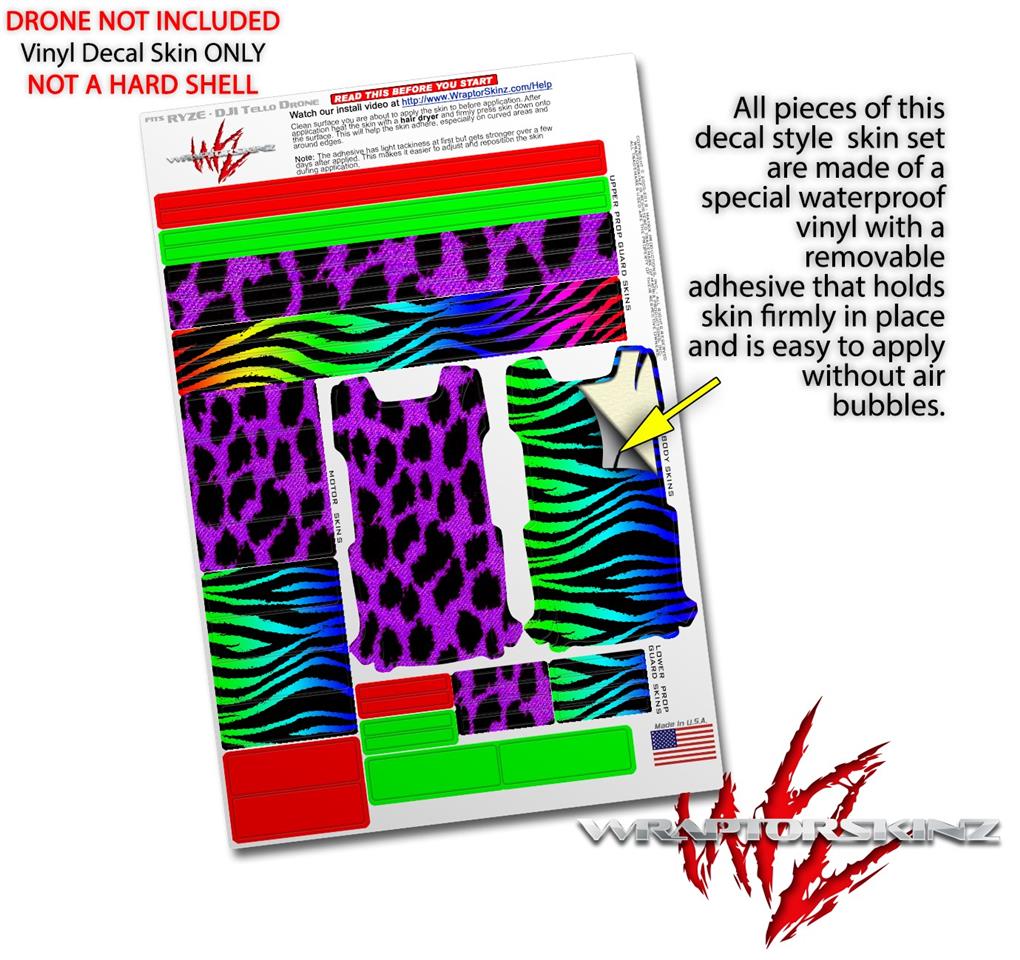 Skin Decal Wrap 2 Pack for DJI Ryze Tello Drone Purple Leopard DRONE NOT INCLUDED