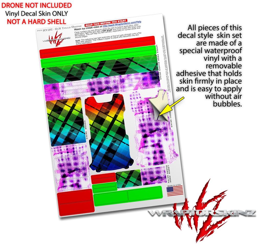 Skin Decal Wrap 2 Pack for DJI Ryze Tello Drone Rainbow Plaid DRONE NOT INCLUDED