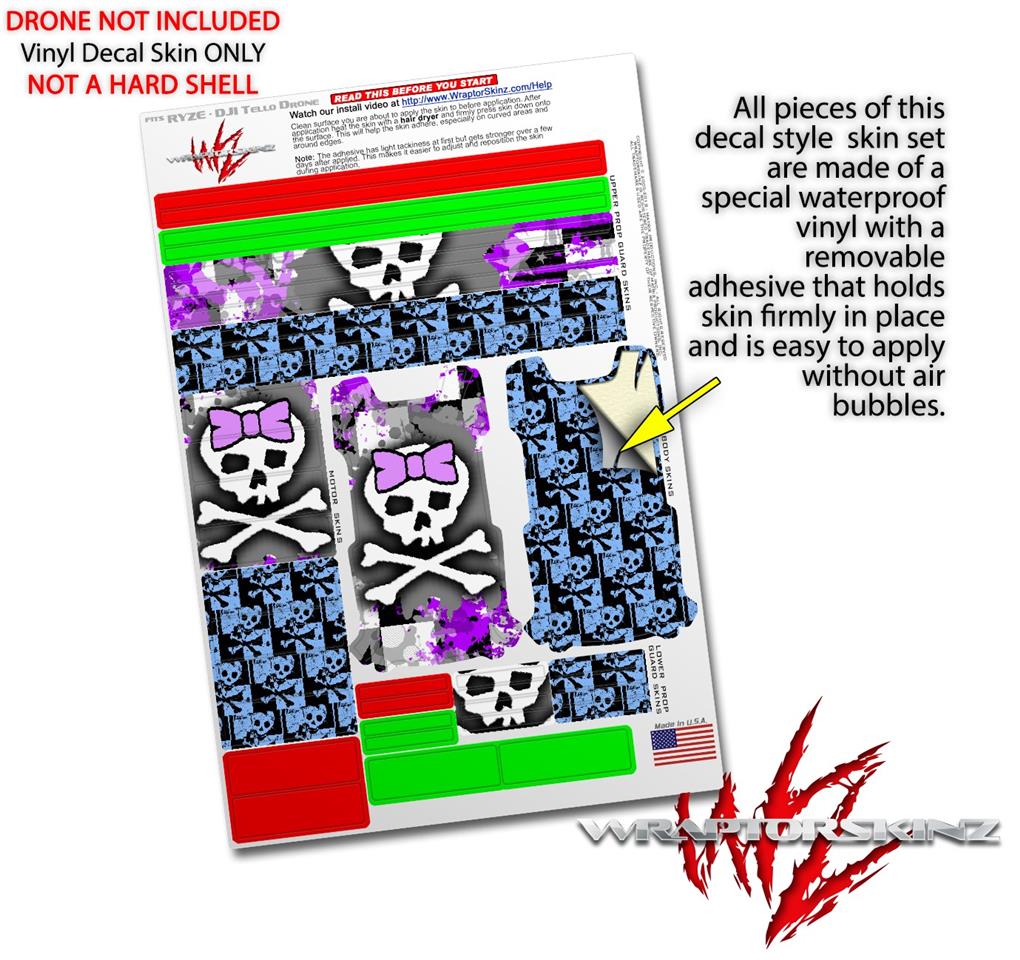 Skin Decal Wrap 2 Pack for DJI Ryze Tello Drone Purple Princess Skull DRONE NOT INCLUDED