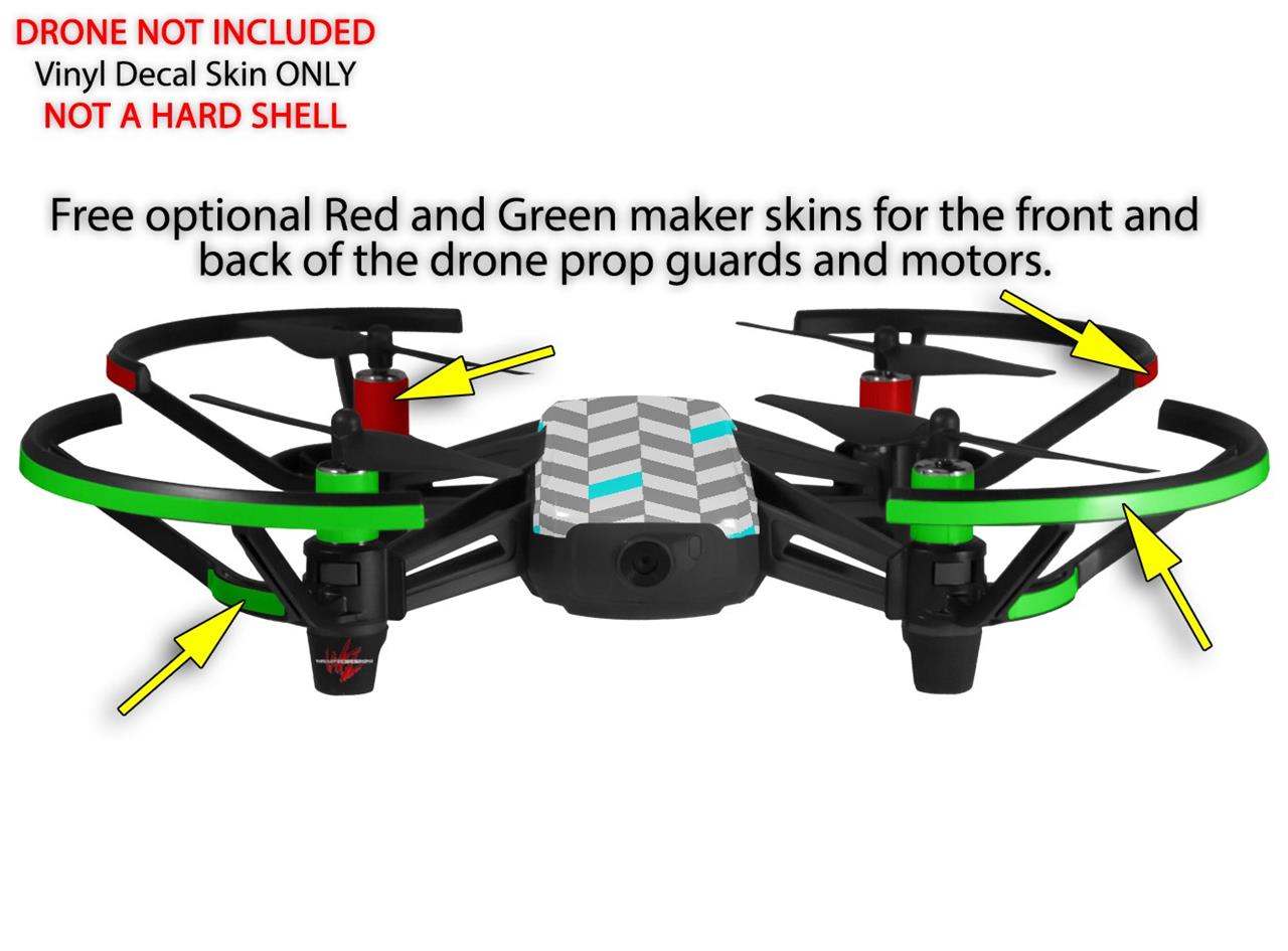 Skin Decal Wrap 2 Pack for DJI Ryze Tello Drone Chevrons Gray And Aqua DRONE NOT INCLUDED